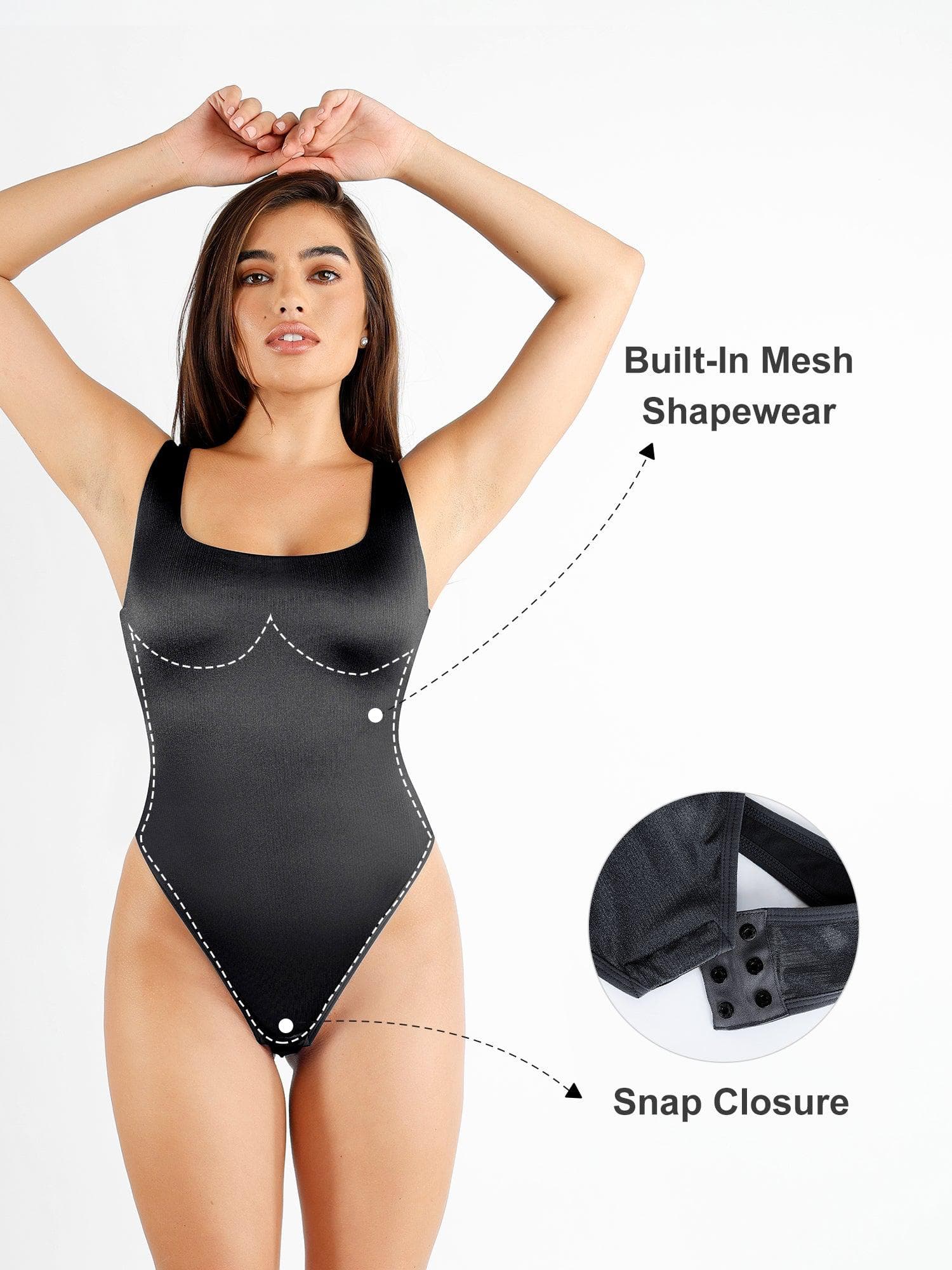 Shapewear Square Neck Smoothing Shine Thong...