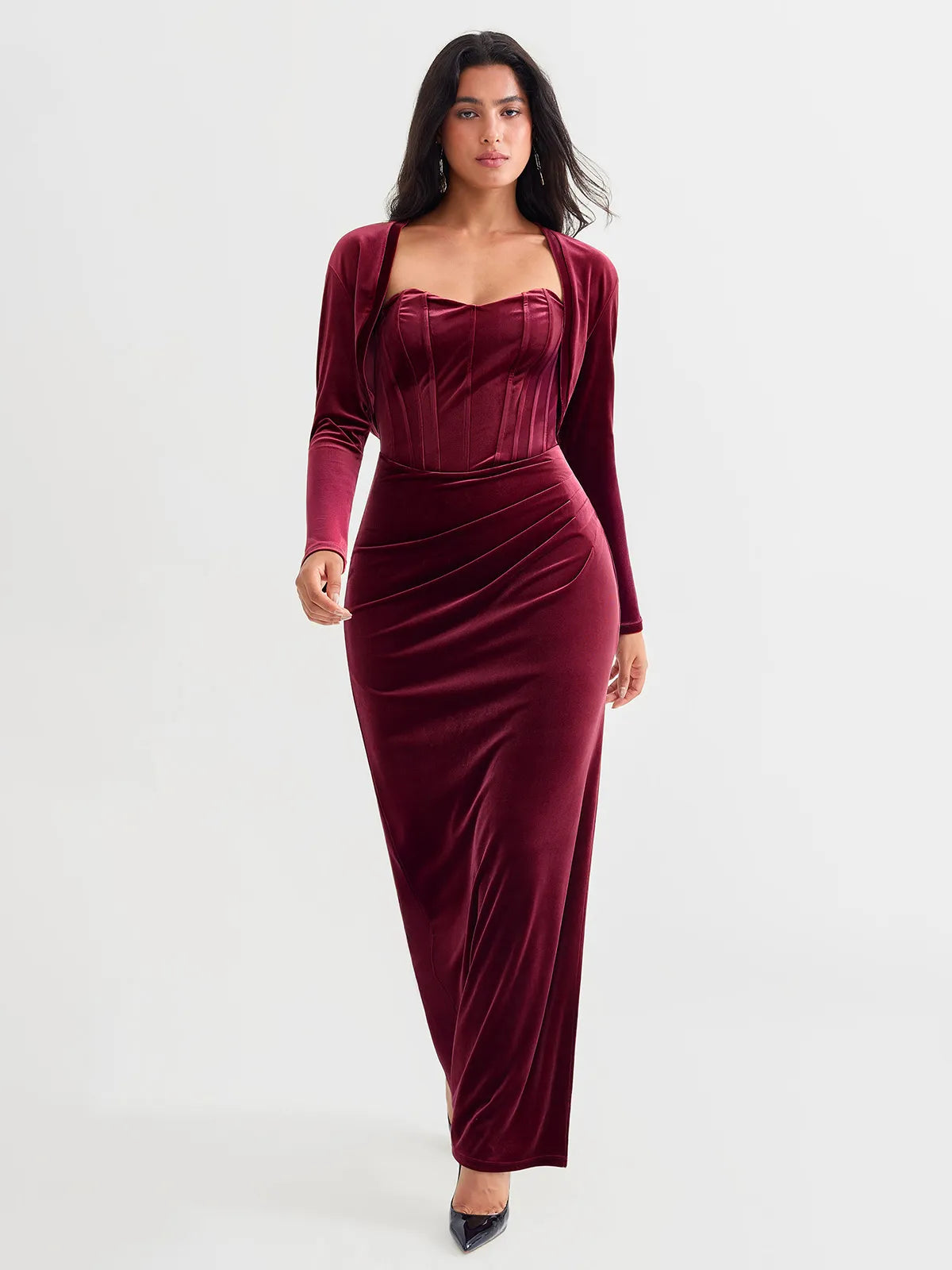 Velvet Long-Sleeve Shrug Bolero